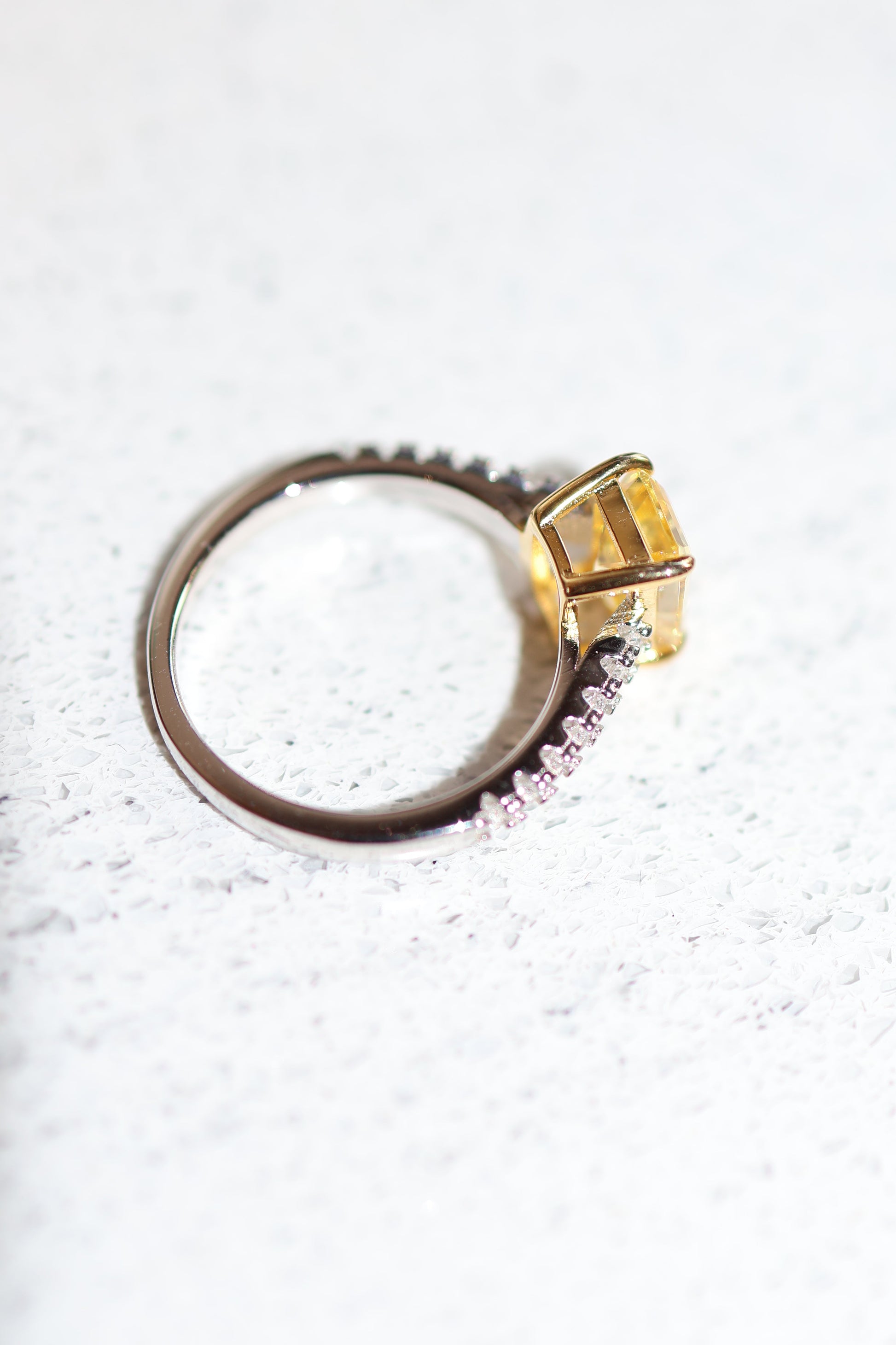 Zirconia cúbica tipo Zafiro Amarillo en piedra central y zirconias cúbicas premium en los laterales