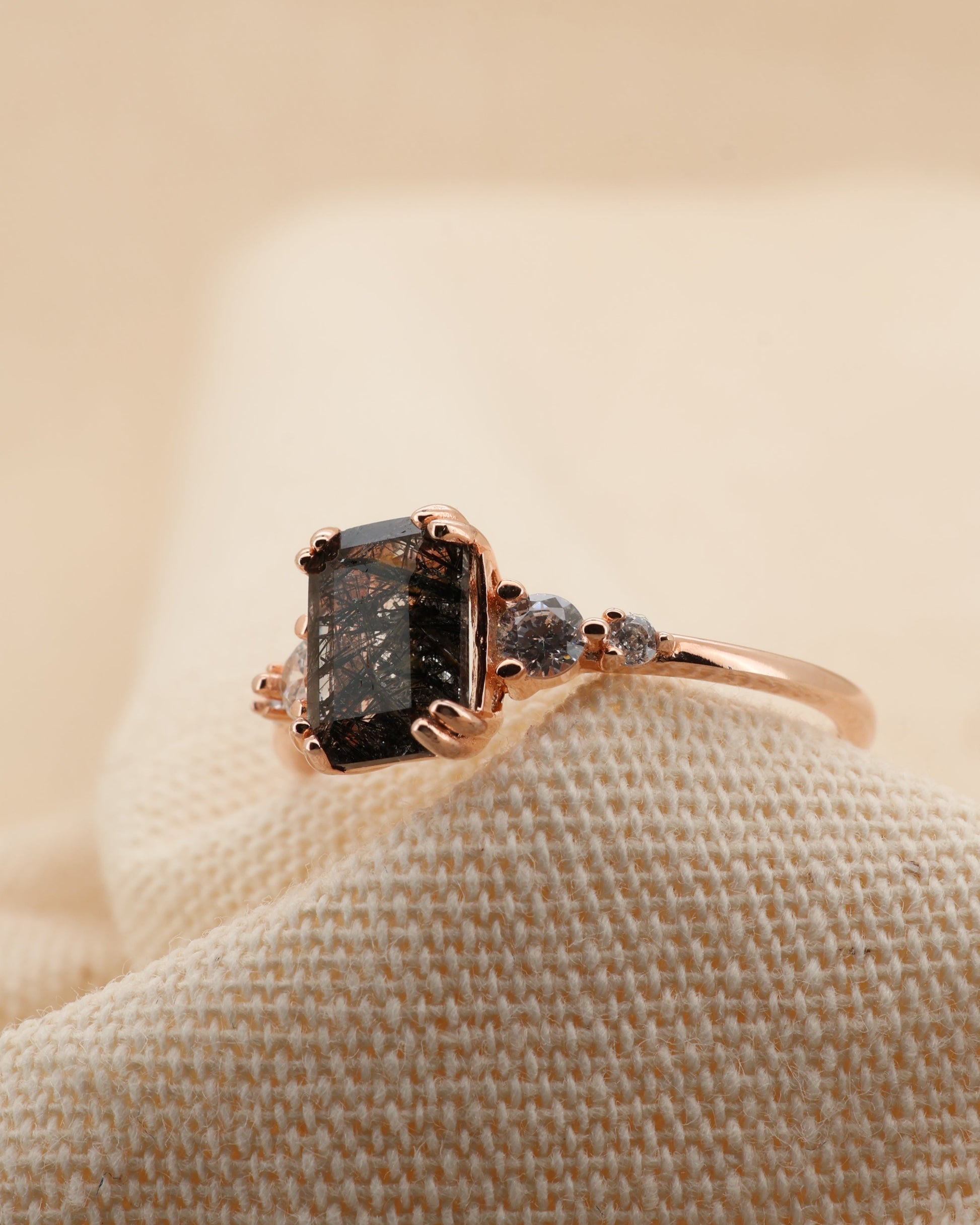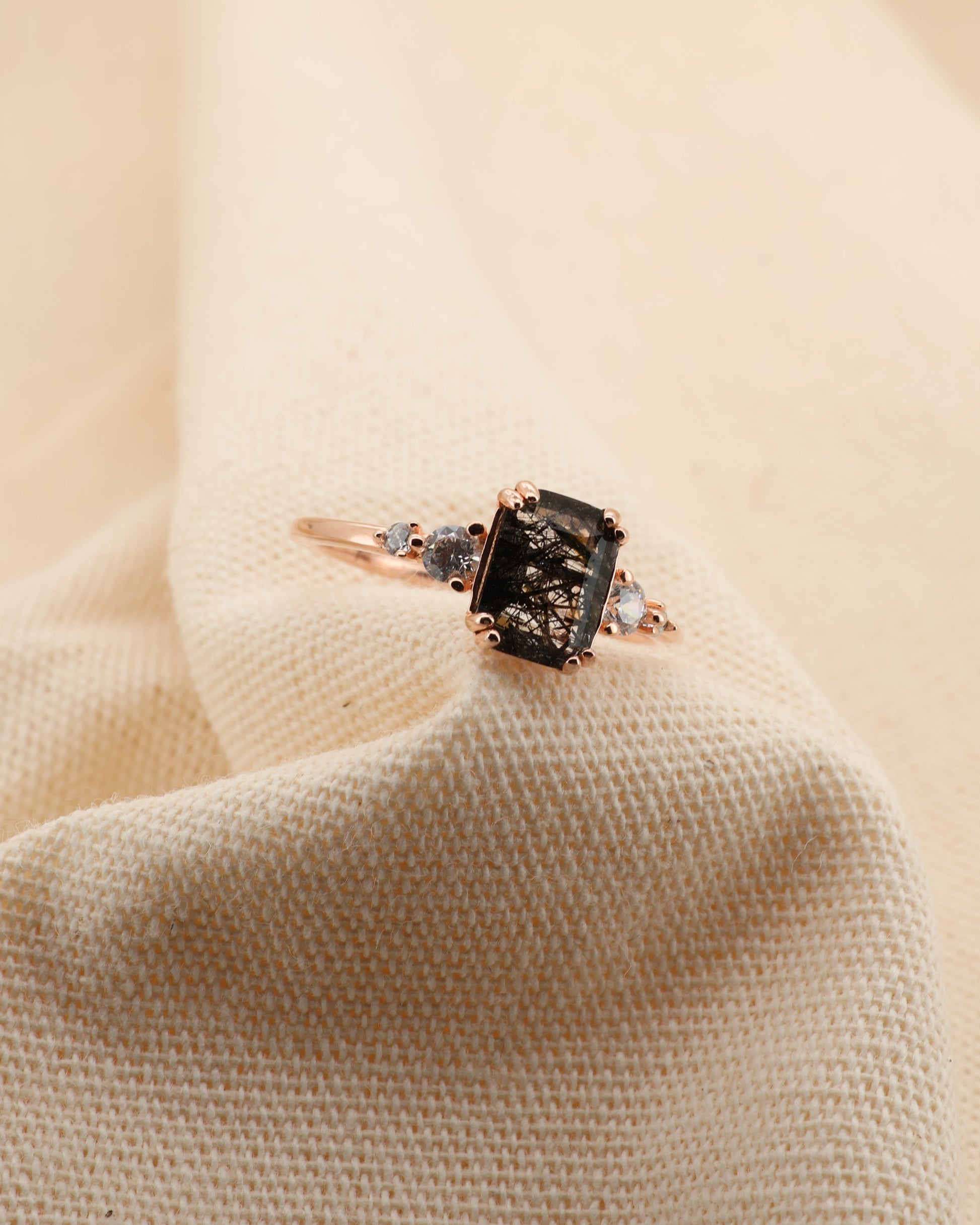 Piedra central cuarzo rutilado negro y zirconias laterales