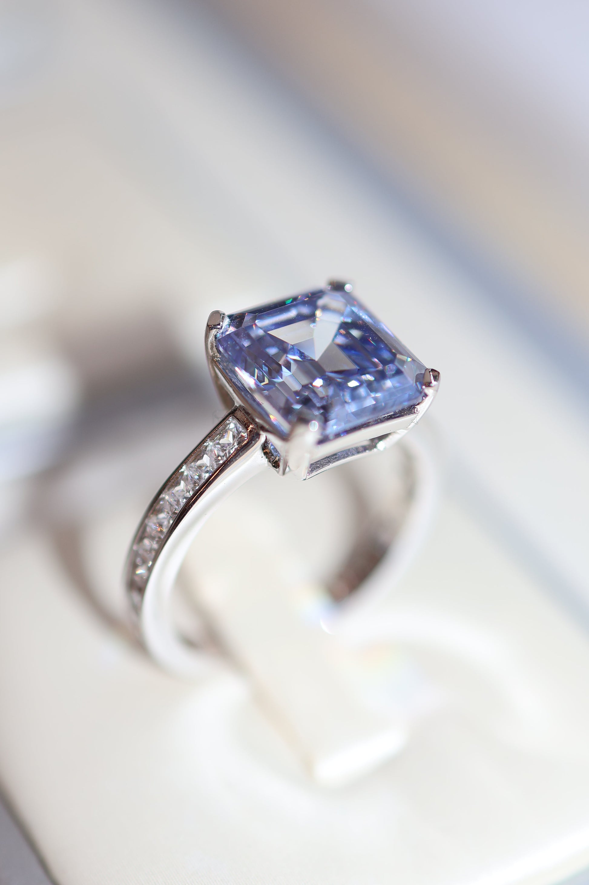 Zirconia cúbica tipo Tanzanita en piedra central y zirconias cúbicas premium en los laterales