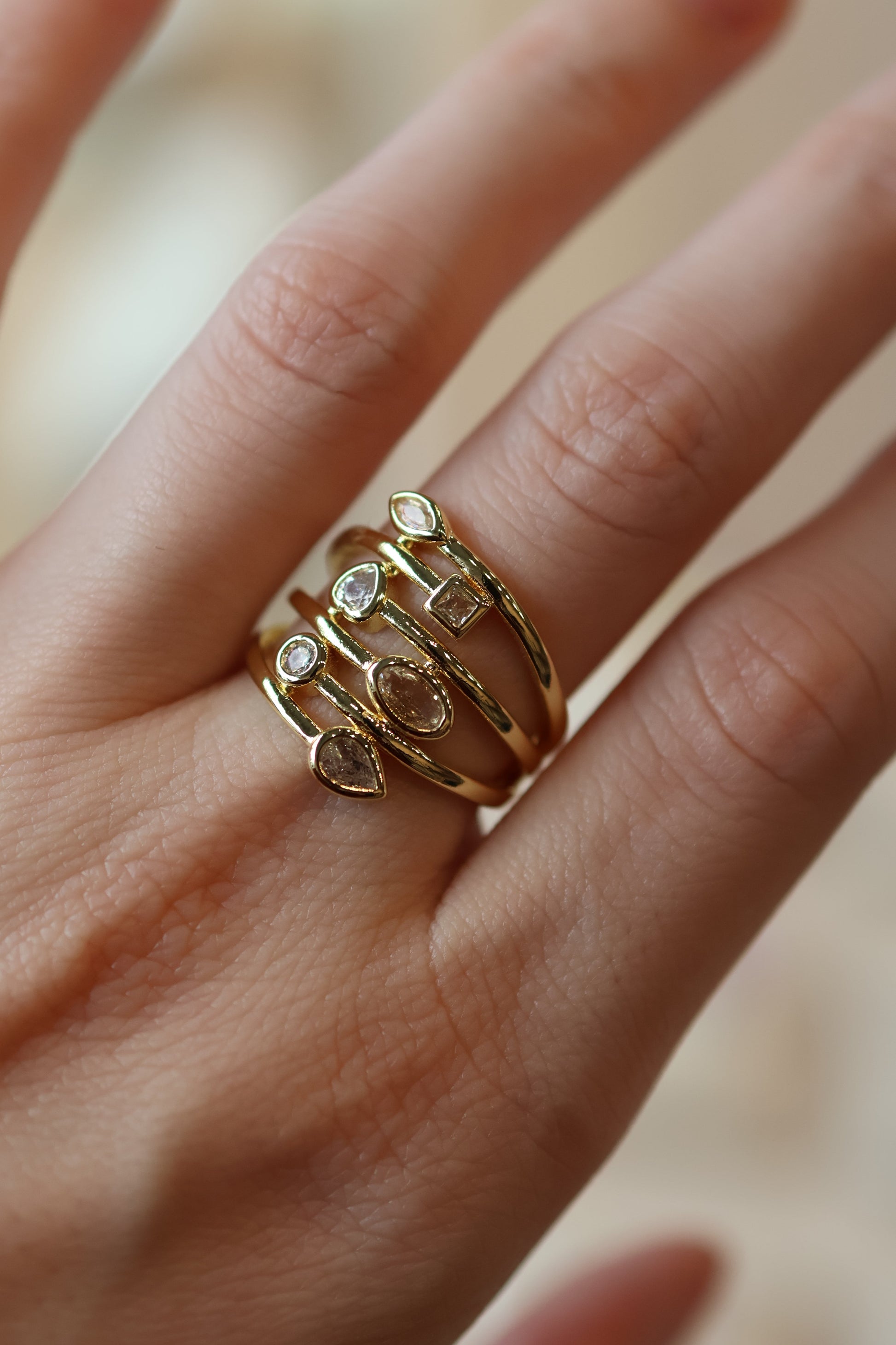 Anillo de latón con oro laminado y piedras zirconias